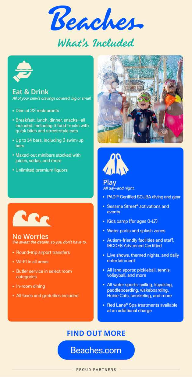 Swap chilly mornings for the warmth of the Caribbean, filled with waterslides, beach days, and picture-perfect moments—but where, you ask? Beaches Resorts, the Caribbean’s ultimate family playground, where everyone from toddlers to grandparents to friends can come together to make island memories.