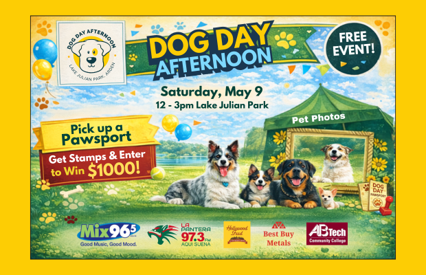 Bring your dogs for our FREE event at Lake Julian Park on Saturday 5/9! Learn how you could win $1,000 with the Dog Day Afternoon Pawsport!